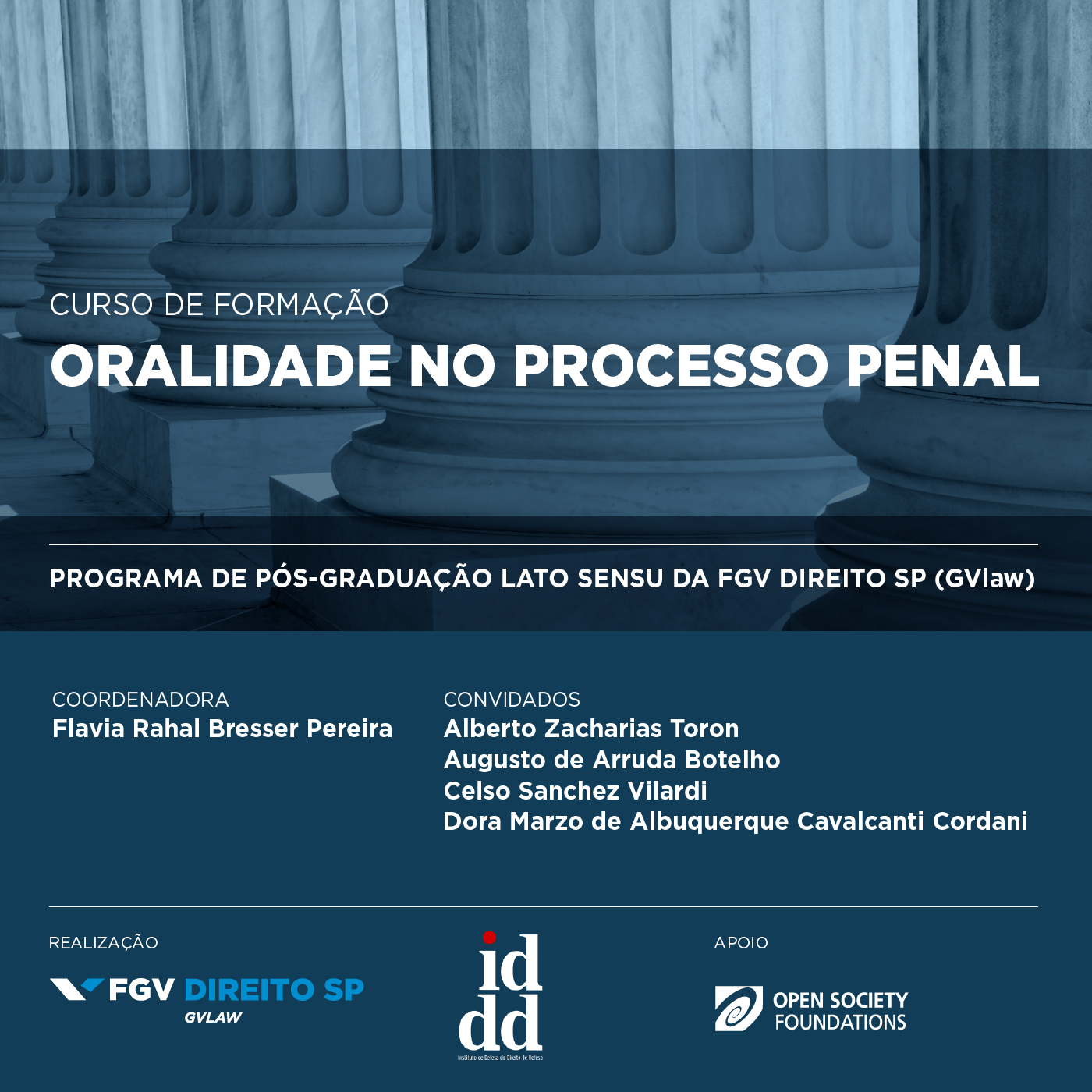 O Instituto de Defesa do Direito de Defesa (IDDD), em parceria com o Programa de Pós-Graduação Lato Sensu da FGV DIREITO SP (GVlaw), promoverá um Curso de Oralidade no Processo Penal. A iniciativa pretende colocar em pauta as possibilidades e desafios envolvidos na atuação do advogado no âmbito do processo criminal, com ênfase nos procedimentos que envolvam a oralidade.