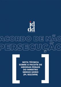 Nesta quarta-feira (21) o IDDD (Instituto de Defesa do Direito de Defesa) publicou 11 notas técnicas sobre diferentes aspectos do pacote de medidas penais proposto pelo ministro da Justiça Sergio Moro. O material foi elaborado pelo grupo de trabalho de Advocacy do Instituto, que é formado por associados/as e membros da equipe executiva. Os trabalhos foram coordenados pelo diretor Renato Marques Martins e pelo vice-presidente do IDDD Hugo Leonardo. O pacote de medidas penais tramita simultaneamente na Câmara e no Senado.