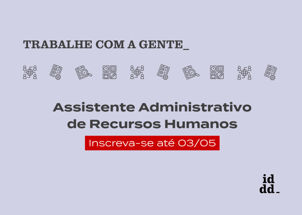 O Instituto de Defesa do Direito de Defesa (IDDD) está com processo seletivo aberto para a vaga de Assistente Administrativo de Recursos Humanos. O formato de trabalho é híbrido (presencial e home office), sendo a sede do IDDD em São Paulo, capital.